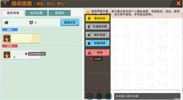 在房间信息左侧的玩家列表里,找到作弊玩家后点击其信息方块,接着点击【举报】按钮即可。