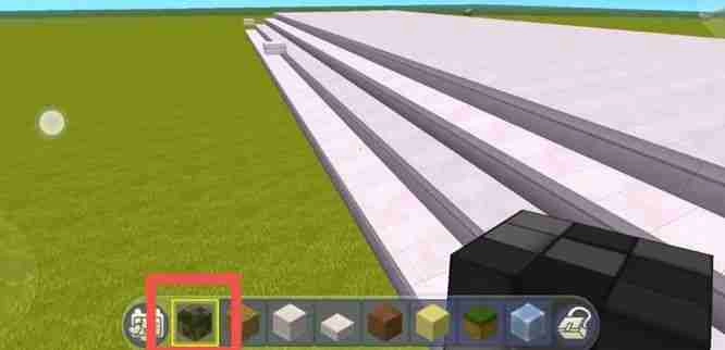 先用硅石块造出教学楼前面的楼梯。如图所示。