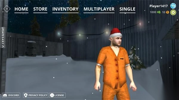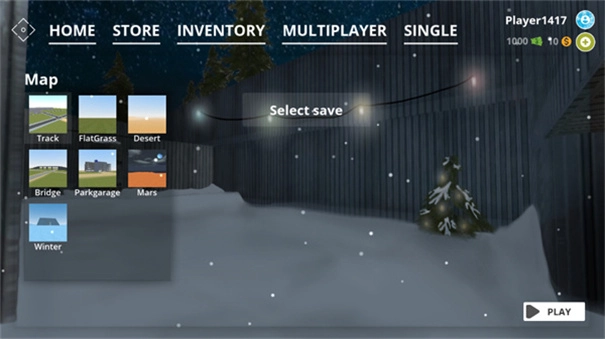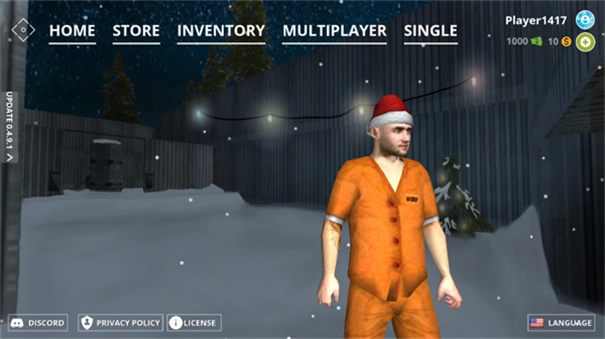 进入游戏后,界面上从左到右排列着五个功能选项,依次为:主页(home)、商店(store)、仓库(inventory)、多人游戏(multiplayer)和单人游戏(single)。