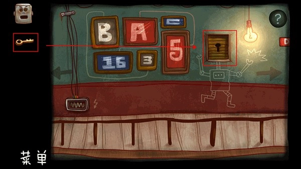 回到楼上的走廊,通过观察墙壁上字母与数字间的连线规律,我们能得出:A对应5、B对应3、C对应16,那么E就等于A加C的和,也就是21。而机器人递来的纸条上明确标注了密码的组合顺序为AEB,换算过来就是5213。