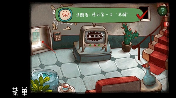 然后点击楼梯回到录下的位置,再点击右侧的箭头,前往右边的房间。