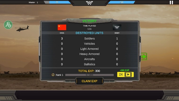 取得战役的胜利后,通过多次挑战能够解锁更多的兵种、军事单位以及场景,而且胜率越高,升级速度就越快。