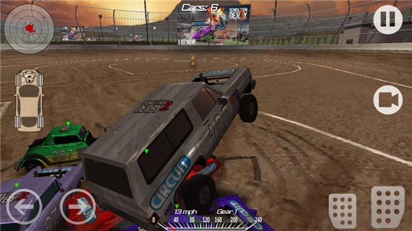 《冲撞赛车2》支持视角切换与操作方式选择,提供按键、方向盘和重力感应三种操作模式。