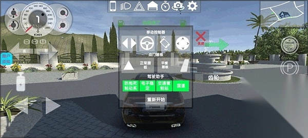 进入游戏后,左侧区域用于操控方向,右侧区域负责控制车辆的前进与后退,界面右上角显示地图,左上角则是车辆的速度表。