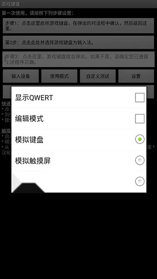 长按“步骤2”,会弹出输入法选择窗口,在该窗口里选择“游戏键盘”,就能把手机输入法切换成游戏按键模式。