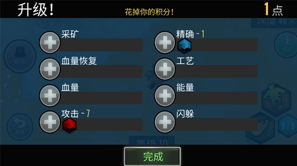 升级后会获得积分,积分可以用来加各种属性。