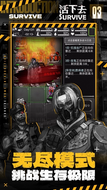 《活下去》是由成都黑骑士团队研发的生存冒险题材手机游戏。游戏的故事背景构建在丧尸肆虐的末日环境中,玩家将化身为一名从尸潮里侥幸存活的人类,必须在危机四伏的世界里不断探索,搜寻稀缺的生存物资,以此确保自己能够在残酷的末日里持续活下去。