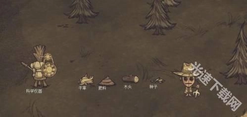 建造农场所需的材料清单如下:1台科学仪器、8根干草、4块肥料、4根木头以及1颗种子。