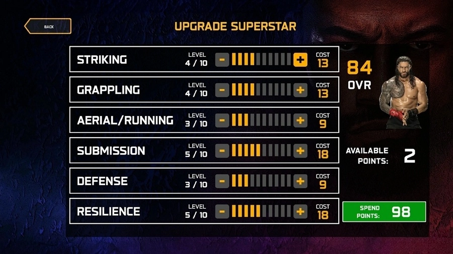 你可以与你最喜爱的WWE超级明星并肩作战,在职业模式里开启争夺WWE头衔的征程,一路记录下自己的胜负历程。你每一次参与比赛,都能让超级明星的属性得到提升。无论是赢得头衔、征服传奇难度,还是在多人在线对战排行榜上全力冲刺榜首,都能在不同模式中解锁丰富多样的成就!