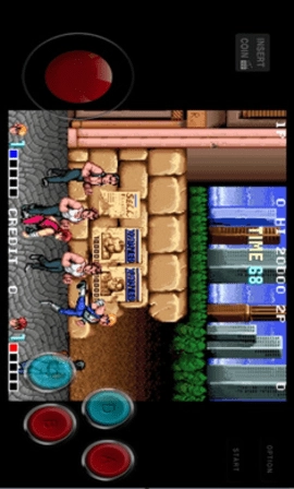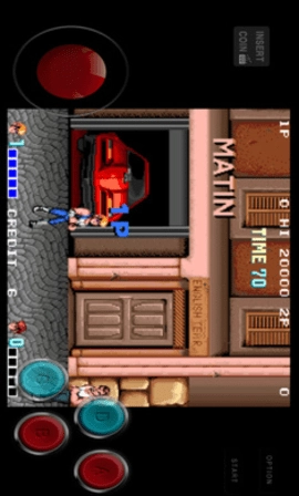 基础移动与攻击:进入游戏后,点击左上角投币口模拟投币,再点击右上角 “start” 即可开始游戏。左侧圆形按键控制角色移动方向,通过上下左右滑动实现走位。右侧设有攻击键,点击可出拳,连续点击能形成连招。
