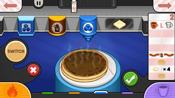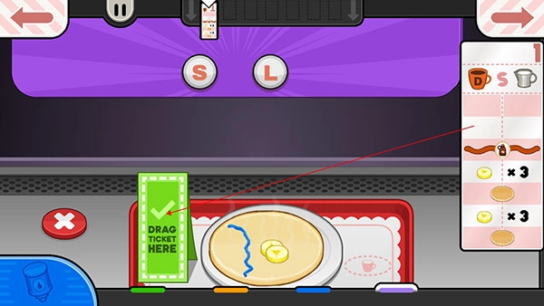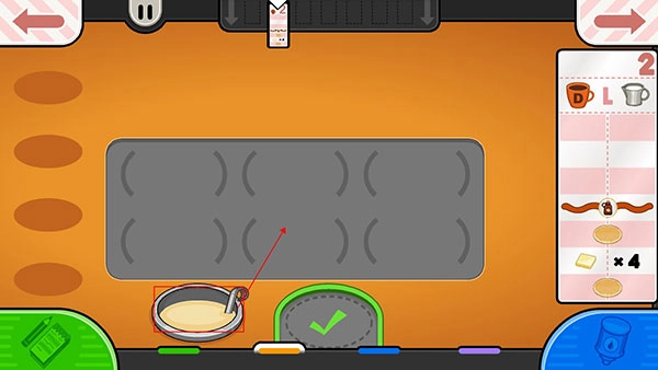 面饼烤制完成后,就可以开始添加配料了。把托盘朝着煎饼的方向拖动,煎饼便会自动落到托盘上。