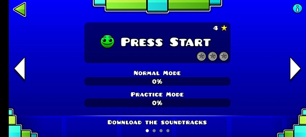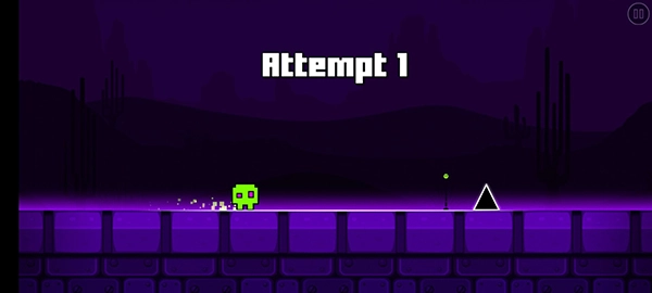 进入游戏前,你得先确认自己是否准备就绪,毕竟一旦进入游戏,就得立刻开始操控方块跨越障碍物。或许有人会想,要是反应不过来可以先暂停一下,但按下暂停键后你会发现,方块和障碍物的位置完全看不见了。所以小编觉得,非必要时尽量别按暂停键,否则重新开始游戏的瞬间,可能就得从头再来了。