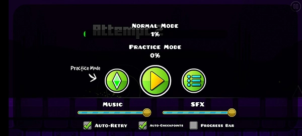 俗话说“失败是成功之母”,这款游戏恰好为我们诠释了这个道理。它不仅能锻炼你的反应能力,更重要的是,在我看来,它还能磨砺一个人的耐心。游戏初始提供两种模式供玩家挑选:一种是记录模式,每次失败后可以从上次失败的位置继续挑战;另一种则是无记录模式,这也是最具挑战性的模式——一旦失败就得从头开始,反复跨越那些早已熟悉的障碍物时,我心中满是感慨,对这款游戏真是又爱又恨。因此,它很适合想要培养耐心的玩家。