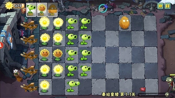 建议在最末排种植多株向日葵,以此稳定供应阳光资源,这是构建防御体系的基础。