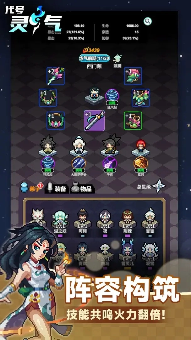 《代号灵气》是一款像素风格的角色扮演冒险游戏,玩家将化身仙门门主,在游戏中收集资源、招募弟子,通过多样玩法提升实力,斩妖除魔以拯救世界。游戏拥有丰富的玩法内容、宏大的世界观设定,以及海量可自由修习的修仙功法,助力玩家完成各类挑战任务,获取丰厚奖励资源,带来别具一格的游玩乐趣。