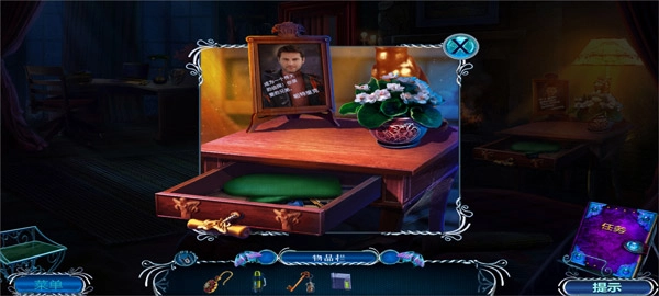 玩家进入首先点击床头柜位置,获得任务笔记本;