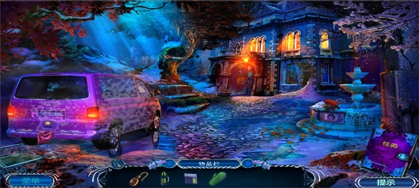 用保温杯中的热水化开汽车尾部的冰,取下布;到树洞里取出塔罗牌盒子,解锁塔罗牌收集系统;在右侧喷泉旁驱走乌鸦,捡回细枝与没电的手机。