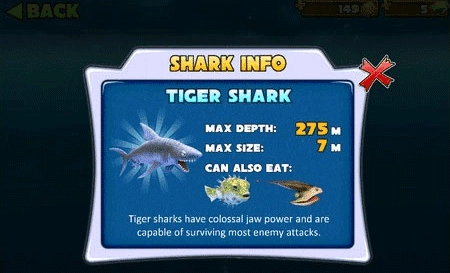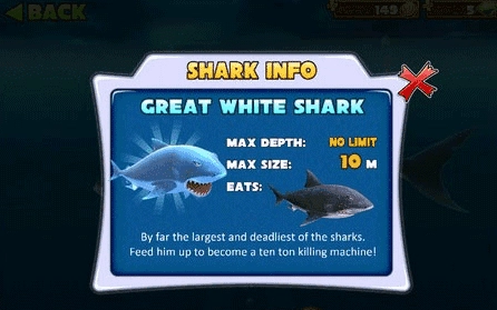 小编建议:系统默认的初始鲨鱼,血量偏少、移动速度较慢,很容易被其他鱼类反杀,生存能力比较弱,只适合新手在过渡阶段使用。
