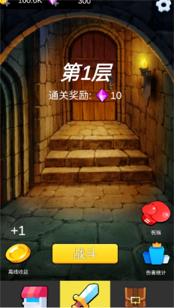 首先对抗第一层的BOSS,胜利领取金币,钻石奖励