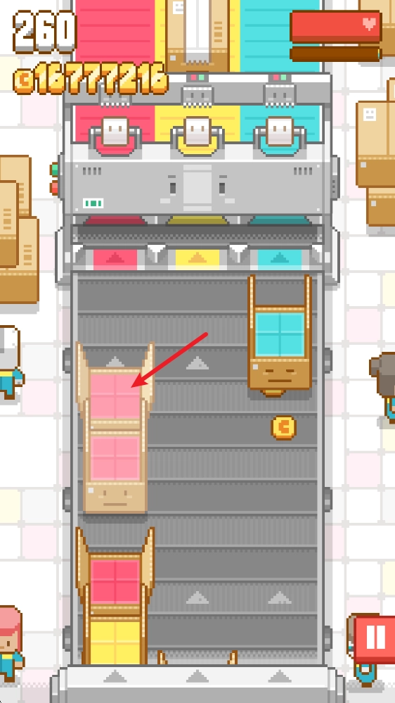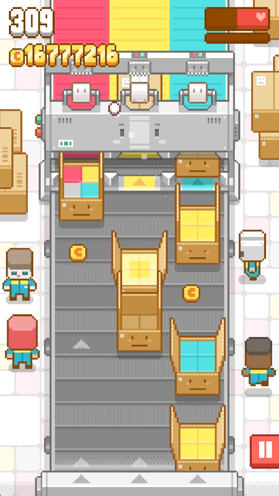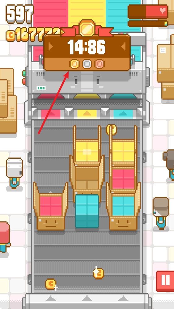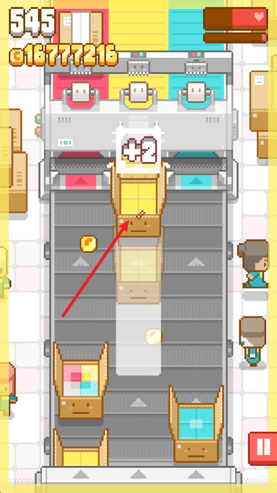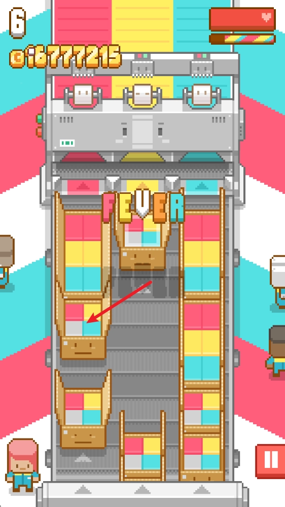 点击箱子就能把它送回对应颜色的通道,还能获得分数,堆叠在一起的箱子数量越多,得到的分数就越高。