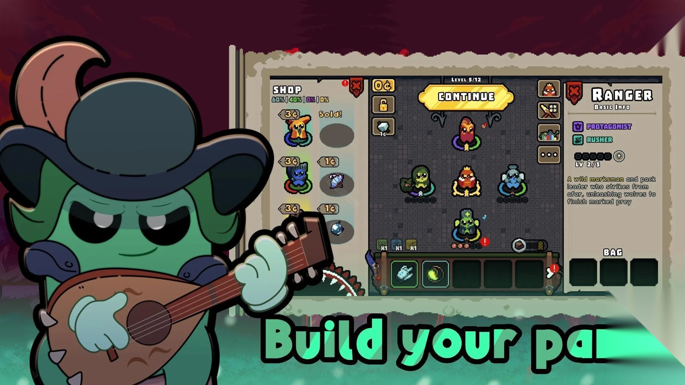 在冒险模式下挑选区域,每次战斗开始前从随机英雄池中征召英雄并安排他们的站位。
