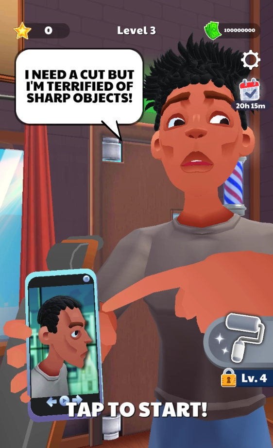 游戏里的每位客人都独具个性,他们会因生活里的各类际遇挑选不同发型——从无家可归的流浪汉、即将入伍的青年,到80年代的迪斯科男孩……你的任务就是设计出适配的发型,尽情施展才华,让每位客人都称心如意,成为顶尖的理发大师!