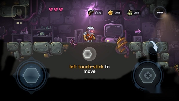 用左侧屏幕的摇杆来操控英雄,右侧屏幕负责瞄准并维持攻击方向,箭头样式的图标对应的是跳跃动作。