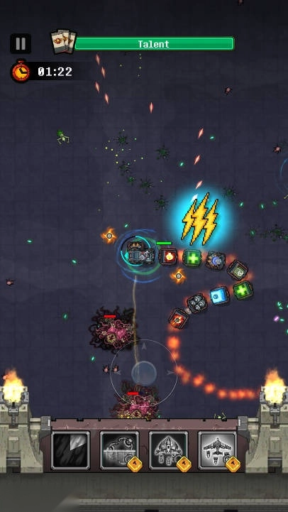 深度策略升级体系:游戏设有多层级的升级路径,战车能够对主炮、装甲、引擎等核心部件进行强化,机械伙伴则可解锁联动技能,例如“激光塔+护盾发生器”可触发防御反击效果。在对抗外星BOSS时,需要结合地形与伙伴特性来制定战术——比如利用高速引擎绕后攻击,或是依托装置组合构建火力网,策略深度贯穿于游戏的整个过程。