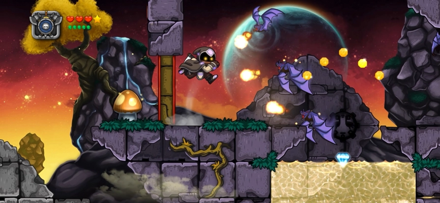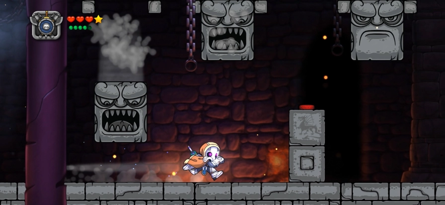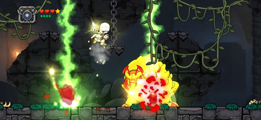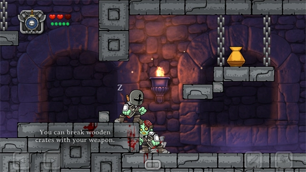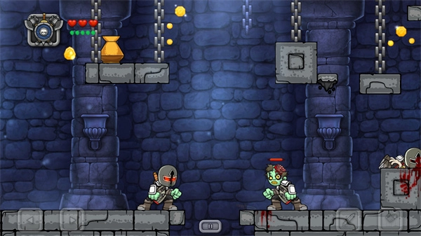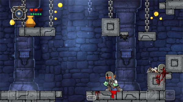角色的血量会显示在左上角,一旦受到攻击就会减少,要是血量变成零,闯关就会失败。