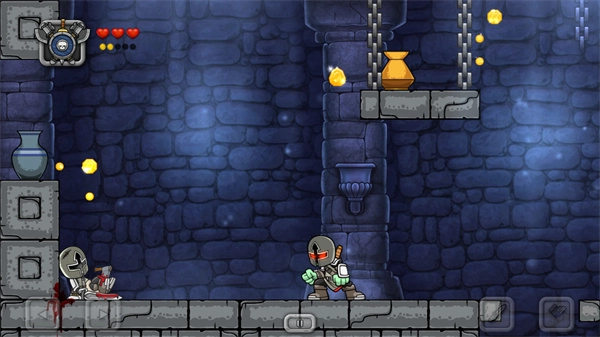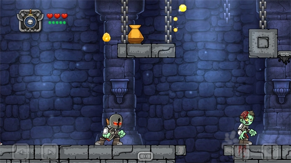 选好职业后就可以开启闯关之旅啦,左下角的两个按键用来操控角色左右移动,右边的按键分别对应攻击和跳跃功能。
