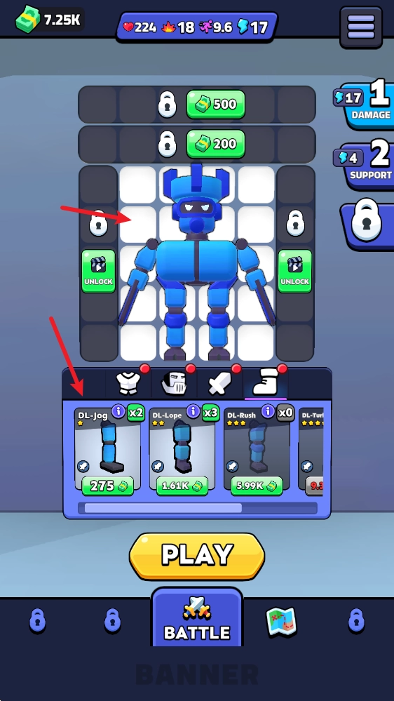 在游戏里,我们得自己把机器人的各个部件拼接起来,拼成一个完整的机器人。