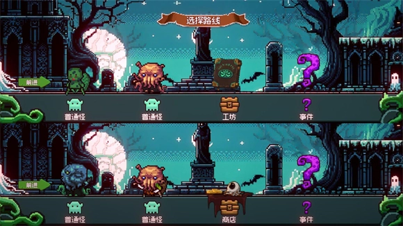 每通过4个关卡后可选择新路线,不同路线对应不同关卡。