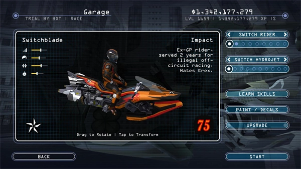 选好地图后,你可以挑选自己的快艇,还能对快艇进行升级;等所有选项都确定好,点击start就能开启比赛。