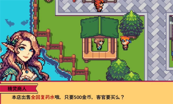还能与商人npc对话,能够购买全恢复药水。