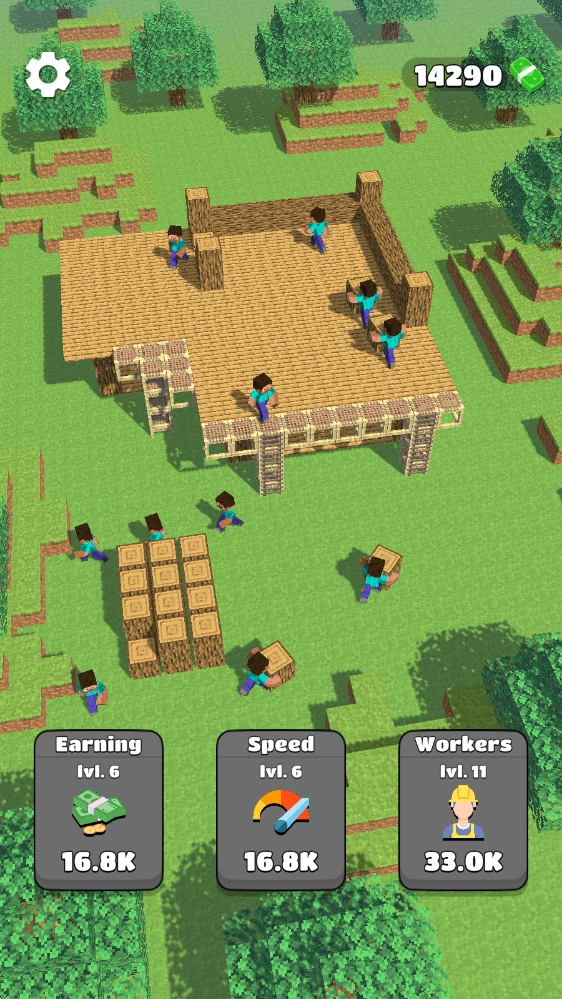 在游戏里,我们得雇些工人帮忙搬运材料,这样才能一步步推进建设进程。