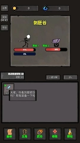 游戏包括主角、武功、修炼、驿站四部分。