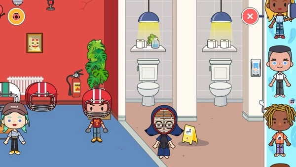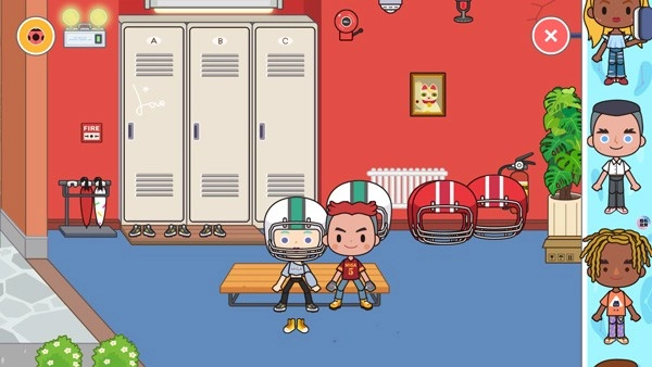 点击右侧那个身着球具的人物,就能进入球场区域,这里配备了橄榄球场、羽毛球场、更衣室、卫生间等各类场地设施可供使用。