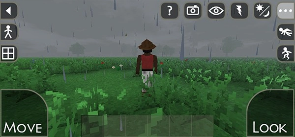 右上角的功能按钮分别能调节角色视角、切换场景天气等,我们的目标就是在这张地图里生存下来。