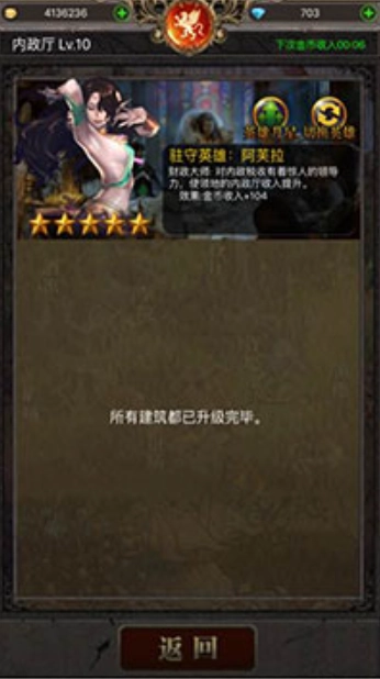 开局阶段,我个人觉得没什么太高要求,只要有一个传说品质的内政金币英雄就行。前期金币资源很关键,所以离线挂机功能一定要买!
