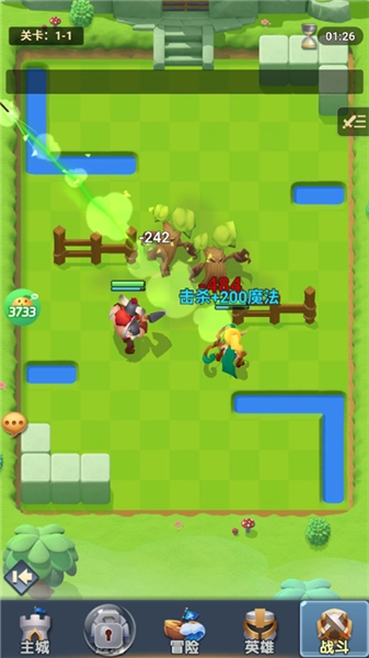 战斗中包含技能打断与集火机制,玩家可通过组合不同英雄的技能来触发连锁效果,具有较强的策略性。