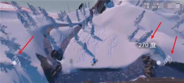 点击“开始”后,玩家能够借助点击左右两侧的手掌图标来操控滑雪板,使其加速向前移动。