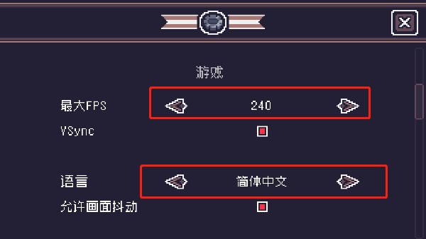 在语言设置处把语言切换成简体中文就可以了,另外还能将最大FPS值设为最高,这样能让体验更流畅。