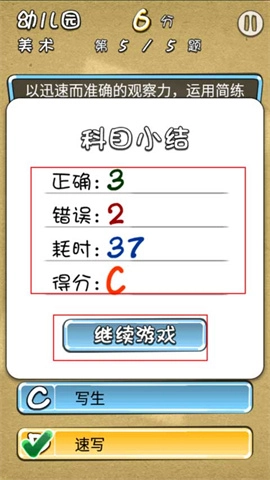 不同科目的题目数量不一样,答题时要仔细认真,这可是关系到幼儿园能否顺利毕业的大事哦。等答完所有题目,系统会展示答题的统计情况,到时候点击“继续游戏”按钮就可以啦。