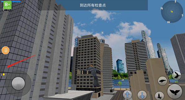 右侧按键控制飞行、降落、滑翔等动作;