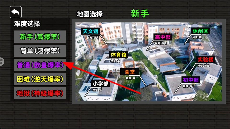 可以根据自己的游戏水平,选择新手、简单、普通、困难或者地狱等不同难度模式,不同的难度模式对应着不同的物资爆率。