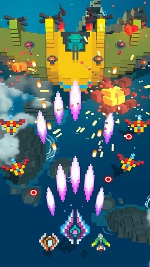 经典街机风格的射击玩法,我们需要操控飞机灵活走位避开各种攻击同时击败更多敌人;