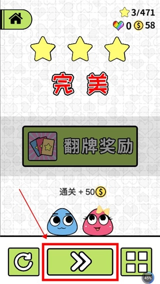 翻牌结束后,点击底部中间的按钮就能进入下一关啦,赶紧来挑战吧!