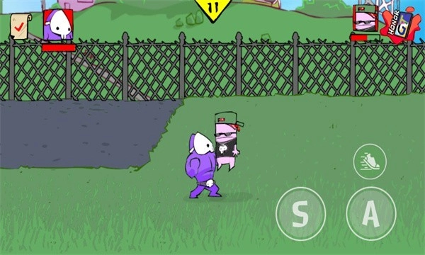 角色移动相关操作如下:游戏界面左侧区域用于操控角色移动,右侧的A键对应轻拳攻击,S键对应重拳攻击,而带有鞋子图标的按钮则是用来触发疾跑功能的。