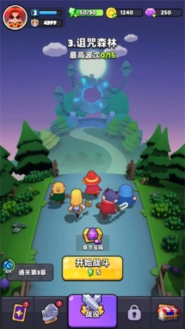 启动游戏后,点击主界面的“开始战斗”按钮就能进入冒险场景。