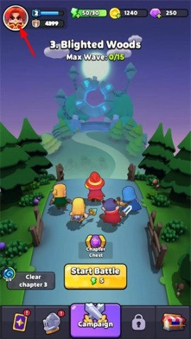 进游戏后,首先点击左上角的头像。